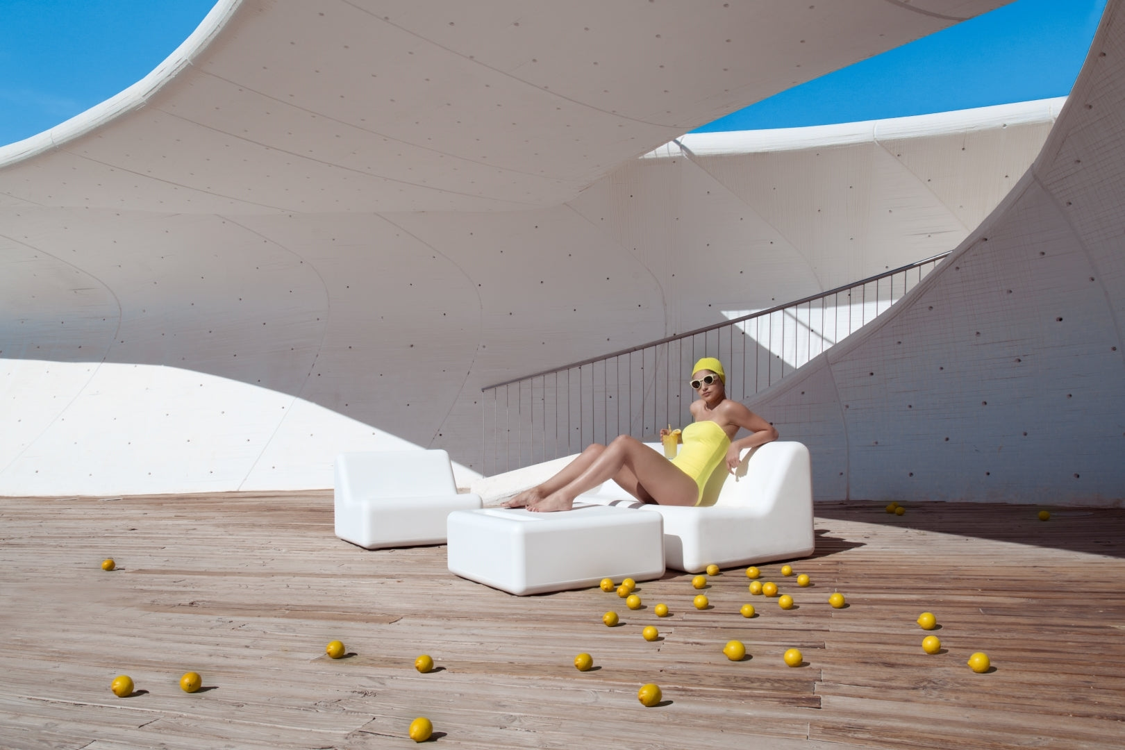 Made of a material such as polyethylene, 100% recyclable and highly durable outdoors, the 356 collection is ideal for intensive use. It is made up of a suggestive deckchair, an armchair with which you can configure a sofa with an unlimited number of seats, a side table with a versatile opening that can be used as an ice bucket or flowerpot, a stool, and a practical coffee table. As all the elements of the 356 collection share the same surprising aesthetic of rounded shapes, you can combine them and together they will help you create contemporary and elegant spaces.