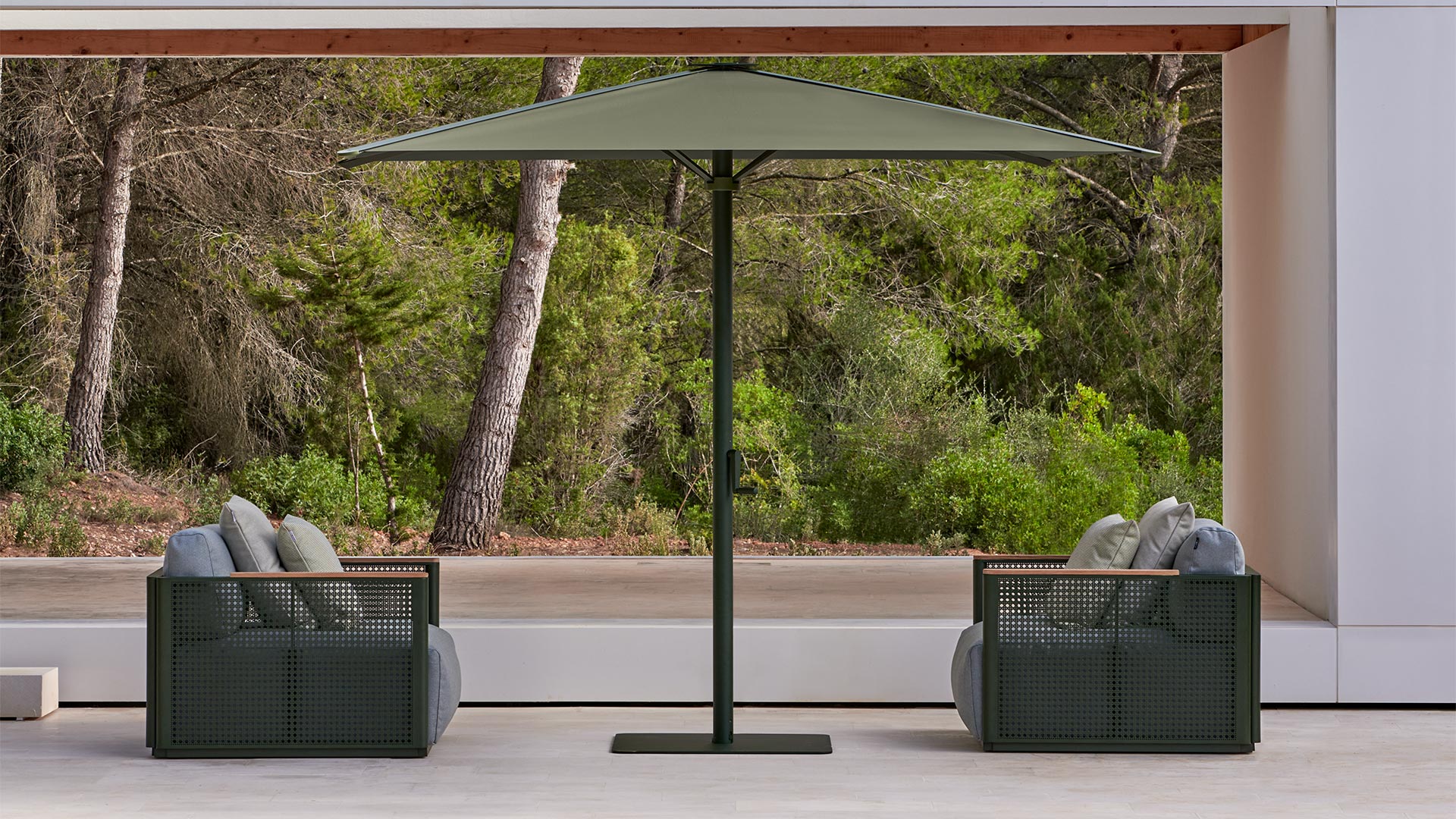 BALI is a sunshade with an umbrella system designed to reveal the mechanisms and structure that other sunshades try to conceal. By using this method we have been able to combine finishes and colours in both fabric and structure, using two colours or just a single colour.