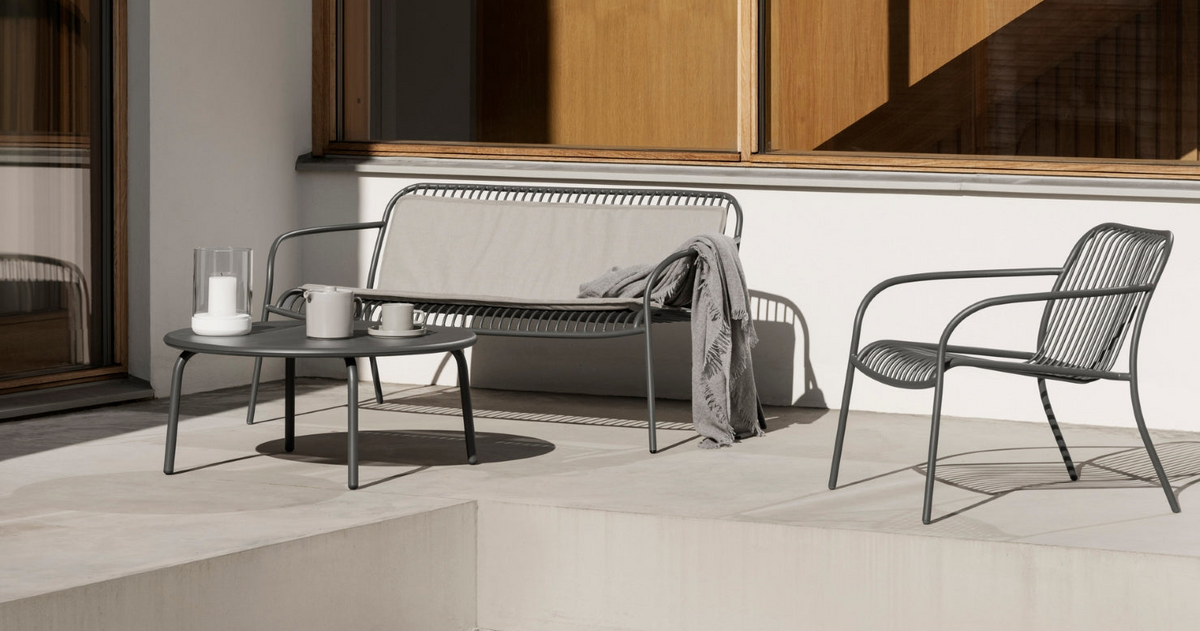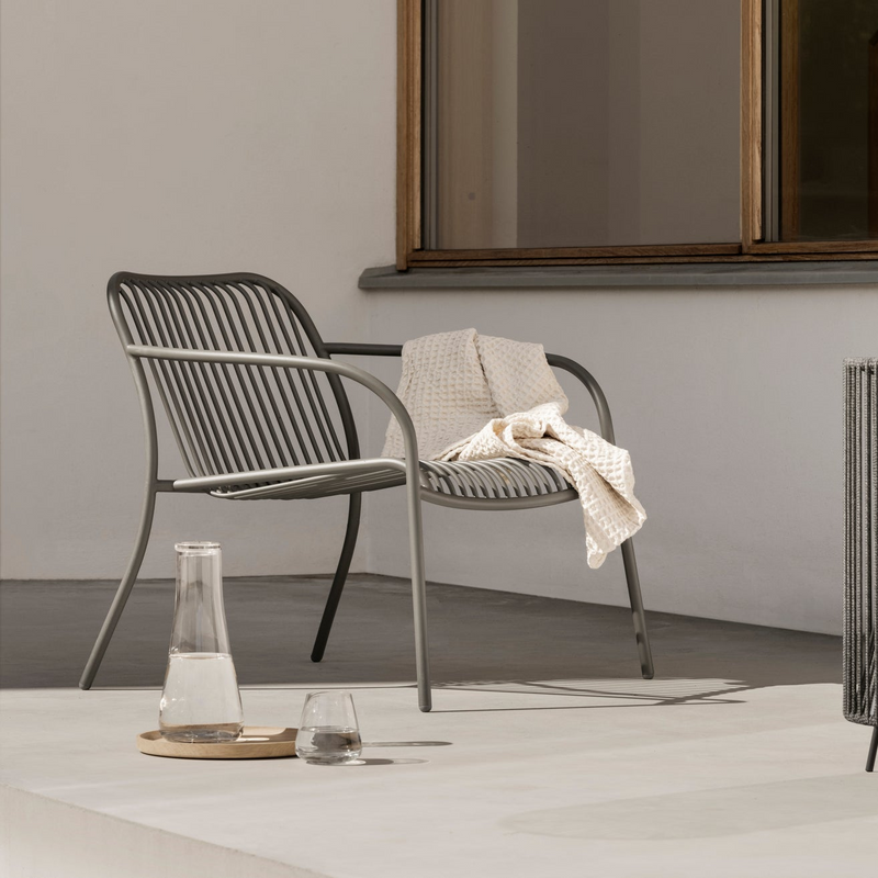 The variety of pieces available within the Yua collection means you can curate your outdoor space to suit your own needs. If al fresco dining is your passion, the range includes a large dining table and a choice of round or rectangular bistro tables. Available in two shades – Silk Grey and Granite Grey – the matching chairs come in flat steel (Yua) and wired (Yua Wire) variants and can easily be stacked and combined and used with cushions designed to fit the seats perfectly. Choose to have them with or without armrests, or why not opt for some of each? Included in the Yua range are also loungers – also available in either flat steel (Yua) or wire (Yua Wire) variations – and, to go with them, lower tables – perfect for resting that after-dinner coffee.