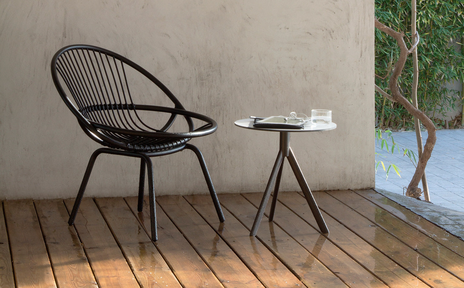 Structure made of oval stainless steel tube, finished with polyester powder. Tabletop options: HPL Trespa® 8 mm/0.31″ thick.