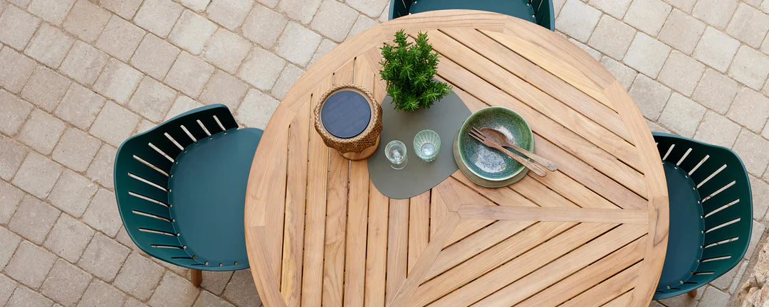 The Define series of teak tables draws inspiration from the captivating teak pattern, renowned for its warm and inviting aesthetic in outdoor spaces. The teak design seamlessly blends aesthetics with timeless elegance, making it a perfect addition to any patio, garden, or deck. Define is produced in certificated Grade A teak, which is the finest teak on the market.