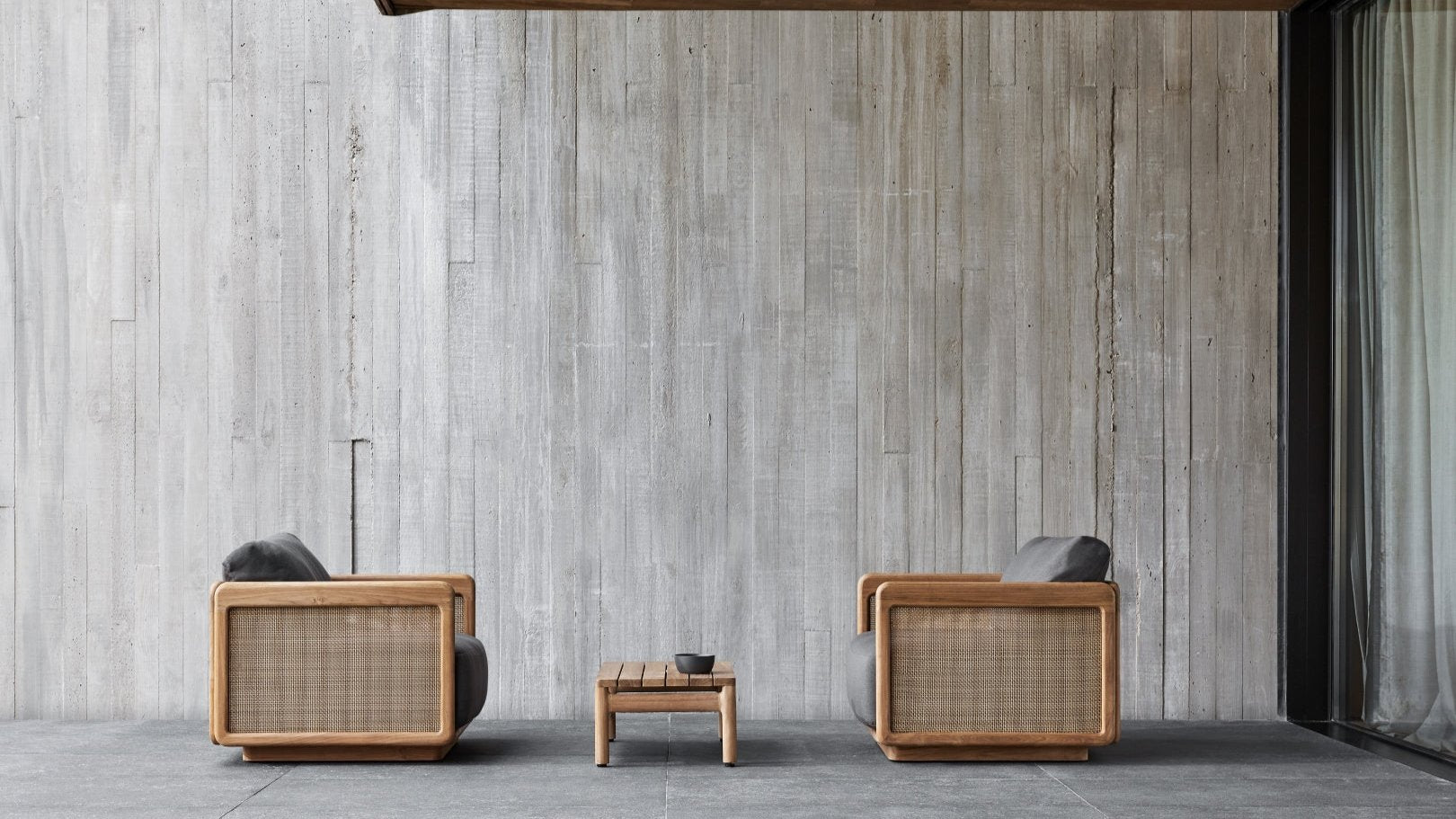 The Dock collection by Claudio Bellini with its distinctive woven panels, set within a robust wooden frame, create a bold and captivating juxtaposition that adds a touch of warmth and sophistication to any outdoor space.