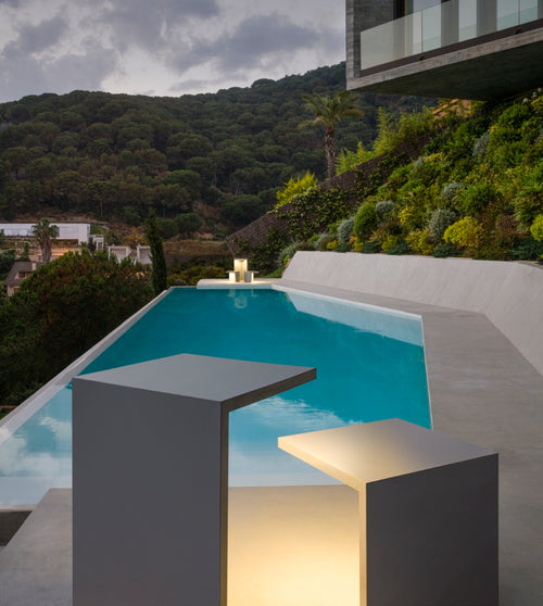 Empty lamps form part of the 'Furniture meets light' concept created for Vibia. The Empty outdoor lighting collection , designed by Xuclà, aims to integrate a light fixture and table or stool module within a single piece of furniture.