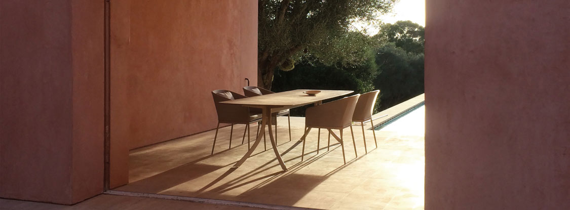 Its name comes from tradition, but its aesthetic is innovative. Its legs of injected aluminum seem to flow smoothly just like the distinctive black ink strokes of shodō (Japanese calligraphy) and evoke organic elements. Its elegance is based upon the balance between simplicity and delicateness, as well as upon a harmonious structure allowing for visual lightness.