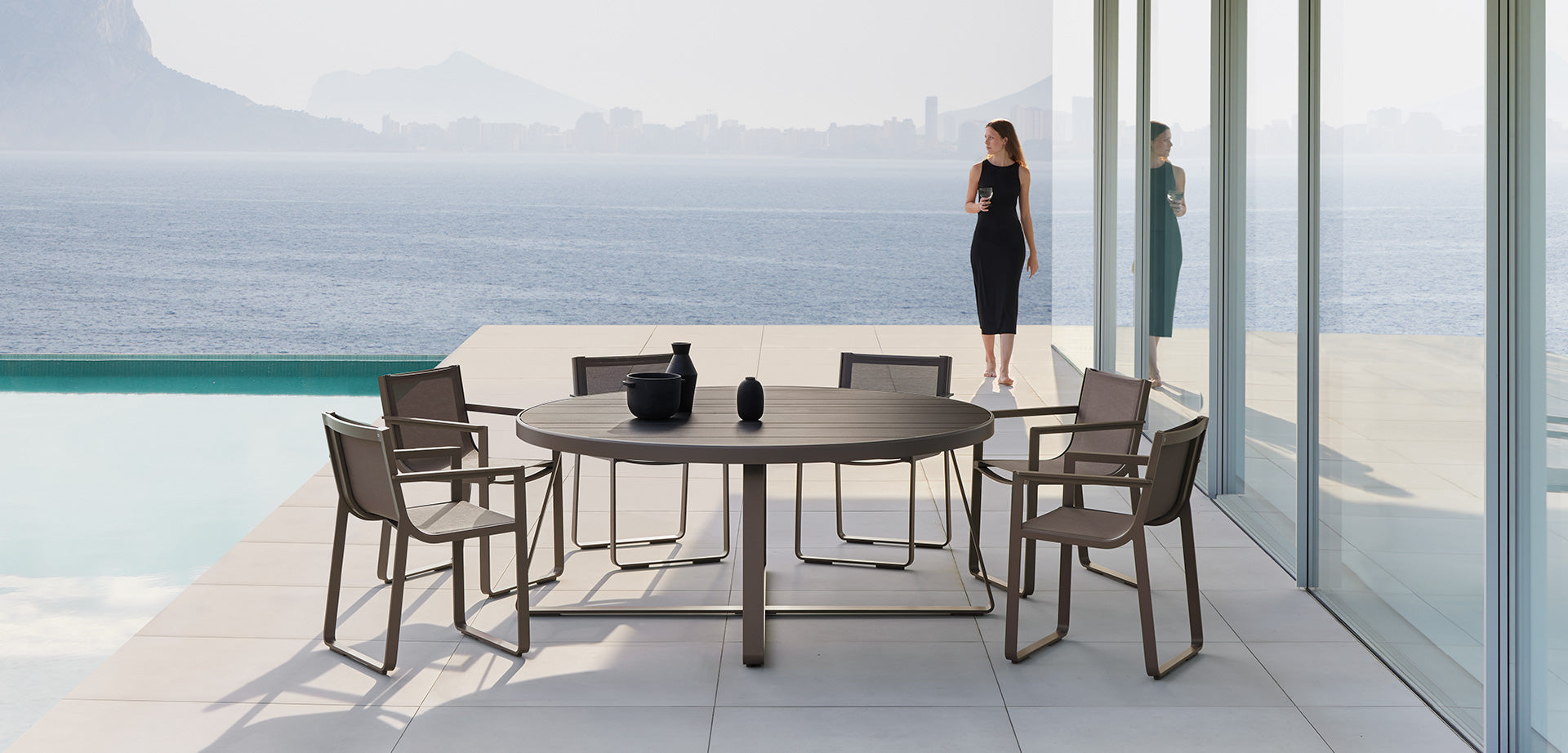 The ergonomic lines of the various seating options invite relaxation, through the combination of an outdoor furniture system with an indoors standard of comfort for this collection. The technical performance is matched by its aesthetics.”