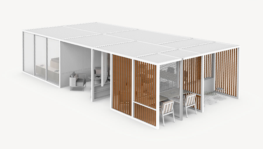 “This solution is versatile and can optimize and multi-purpose space as an elegant design solution. From a truly unique productivity pavilion for the workplace to a cozy shading structure for evening gatherings and celebrations”.