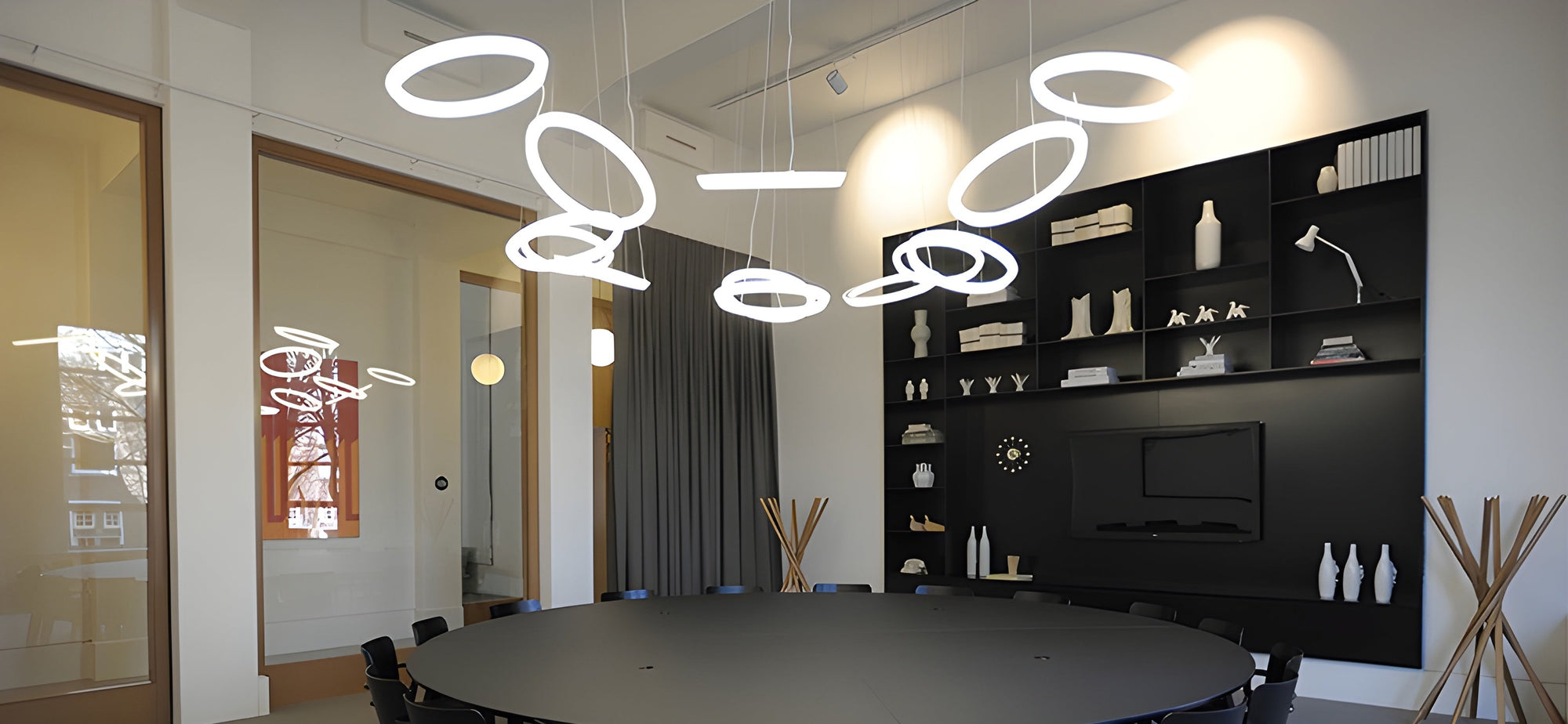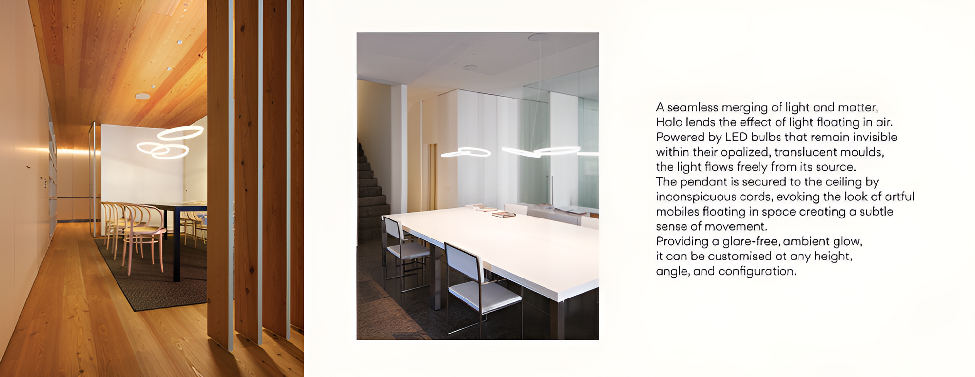 The lighting effect provided by this pendant can be controlled by a dimmer. Vibia offers users three variations that come in 1, 2 or 3 rings, allowing the Halo Circular lamp to be adopted for private and public spaces.