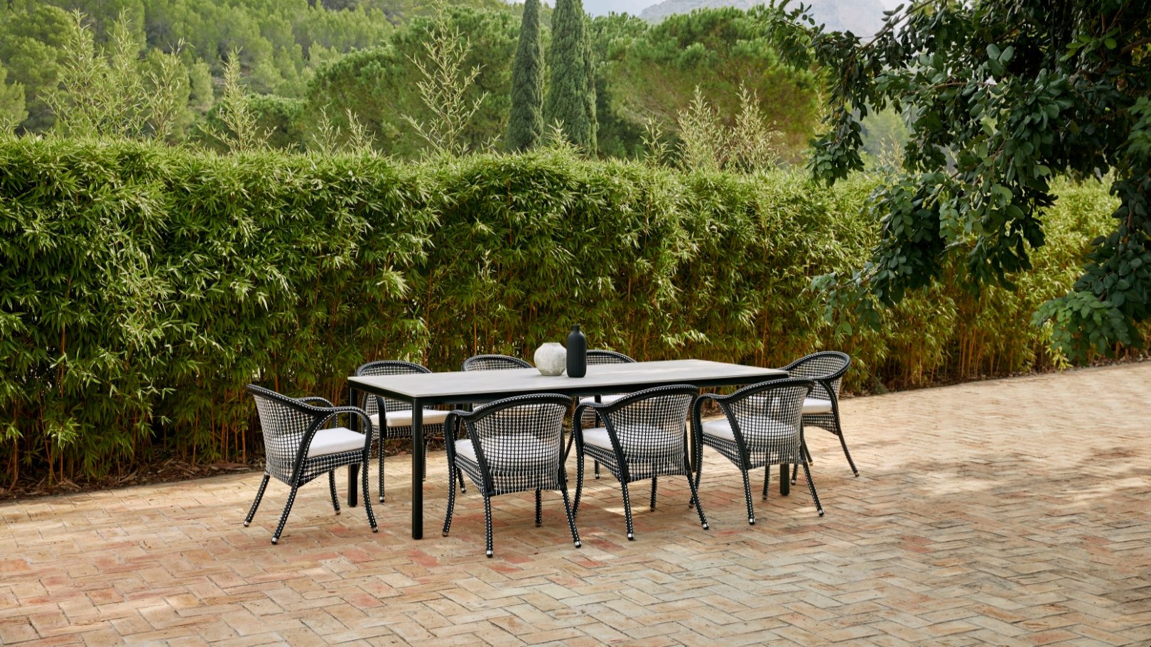 “The Caribbean, the streets of Cuba, afternoons drinking rum, relaxation and warmth were the inspiration”, explains Alfonso Gallego, the designer of the Havana dining armchair. Contrast is the key to this piece made from a lacquered aluminium structure covered with woven Shintotex, a highly resistant recyclable fibre developed by POINT. The sinuous shapes of this piece are designed to fold around us and, as in the best photos, black and white takes centre stage in the weave, creating patterns that are full of rhythm.