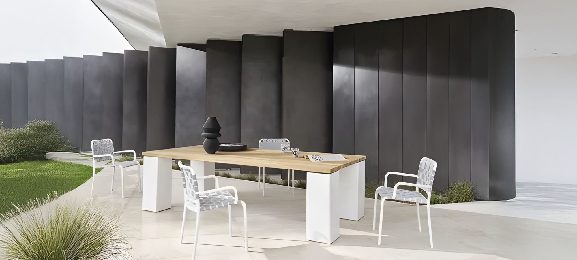 A broad and varied collection of chairs, stools, armchairs, sofas, tables, occasional tables, and accessories portraying the countless ways Gervasoni imagines spending time outdoors. Exotic suggestions are alternated with elements of sophisticated essentiality. Traditional outdoor materials such as wood, worked to enhance its natural properties, are paired with latest generation ones specifically designed to withstand weathering, but no less seductive and poetic. Even the weaving tradition is re-interpreted to resist against water and sunlight, maintaining its technical characteristics and colours unaltered over time.