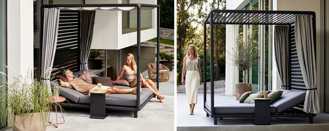 Laze is a cabana with a modern and extravagant design. It is designed with the intention to create the ultimate outdoor furniture for unwinding and relaxation. With several add-ons, you can design the cabana exactly according to your needs. A highly comfortable cabana, with luxurious details and a timeless design.