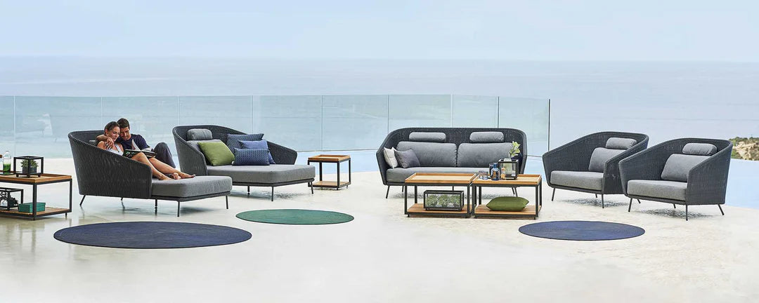 Mega is a unique series of furniture designed by ByKato. The stringent design and calm Scandinavian colours create a very urban look that characterizes the series. Mega sofa and chairs are made in Cane-line Weave® and therefore, ideal for outdoor use in any climate as the material is temperature- and UV- resistant.