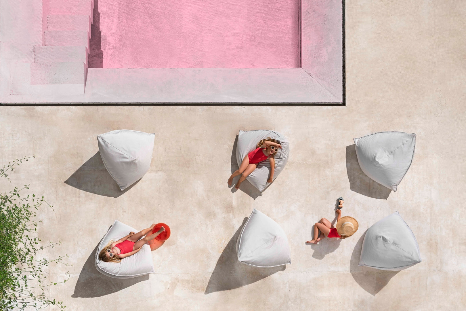 TheSail outdoor lounge chairsare available in three versions so that you can configure your spaces to your liking: theSail Square Pouf, which you can also use as a footrest or coffee table, the comfortably informalSail Pouf, and its surprising kid’s version, theSail Mini Pouf, which the littlest ones can enjoy. Play with the colours ofDiabla Outdoor‘s extensive catalog when selecting its textured upholstery: choose powerful and daring tones or softer ones that invite you to relax. By combining these three elements you can configure any space with a casual and fun touch, creating children’s play areas or relaxing environments on your terrace or porch. In addition, because their filling is very light, you will be able to reorient and move yourSail lounge chairseffortlessly: these designer poufs adapt to your needs at all times.