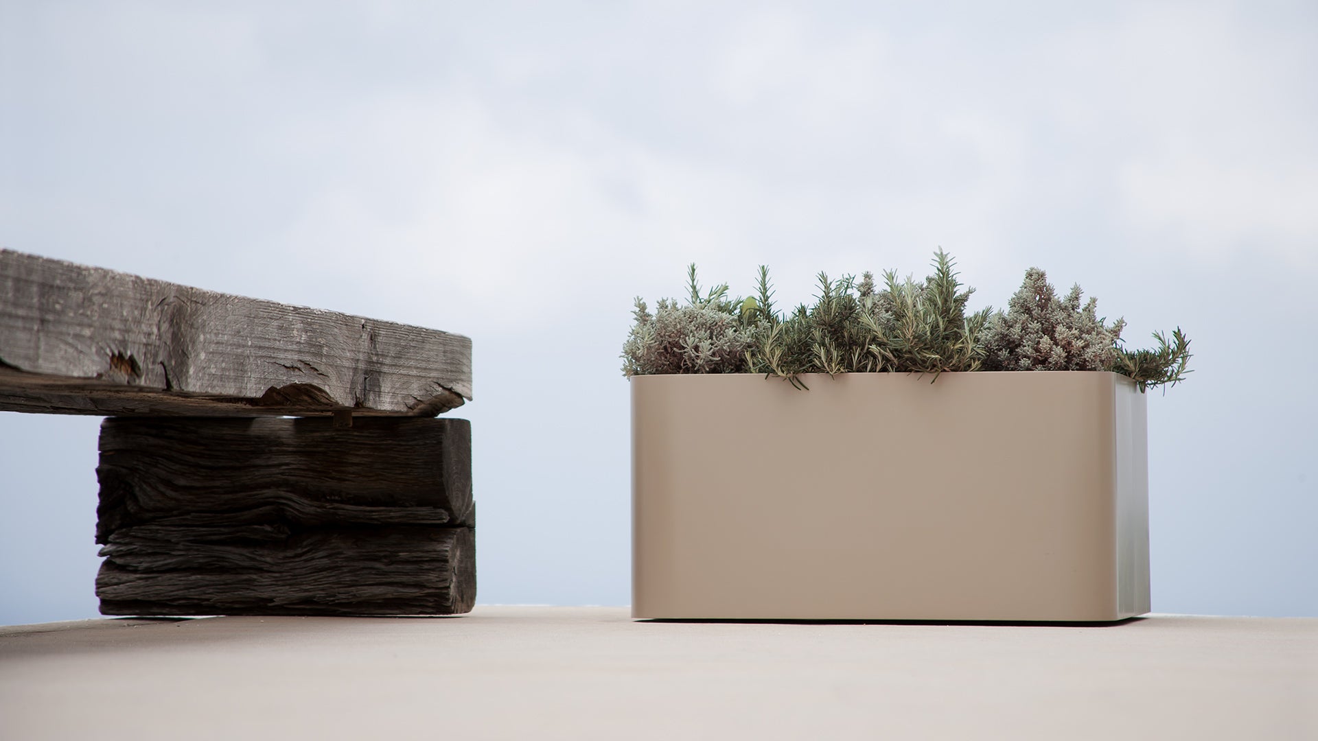 Collection of SONORA planters in powder-coated aluminium available in various colours and sizes. A line of several SONORA planters can be used to create different areas and moods