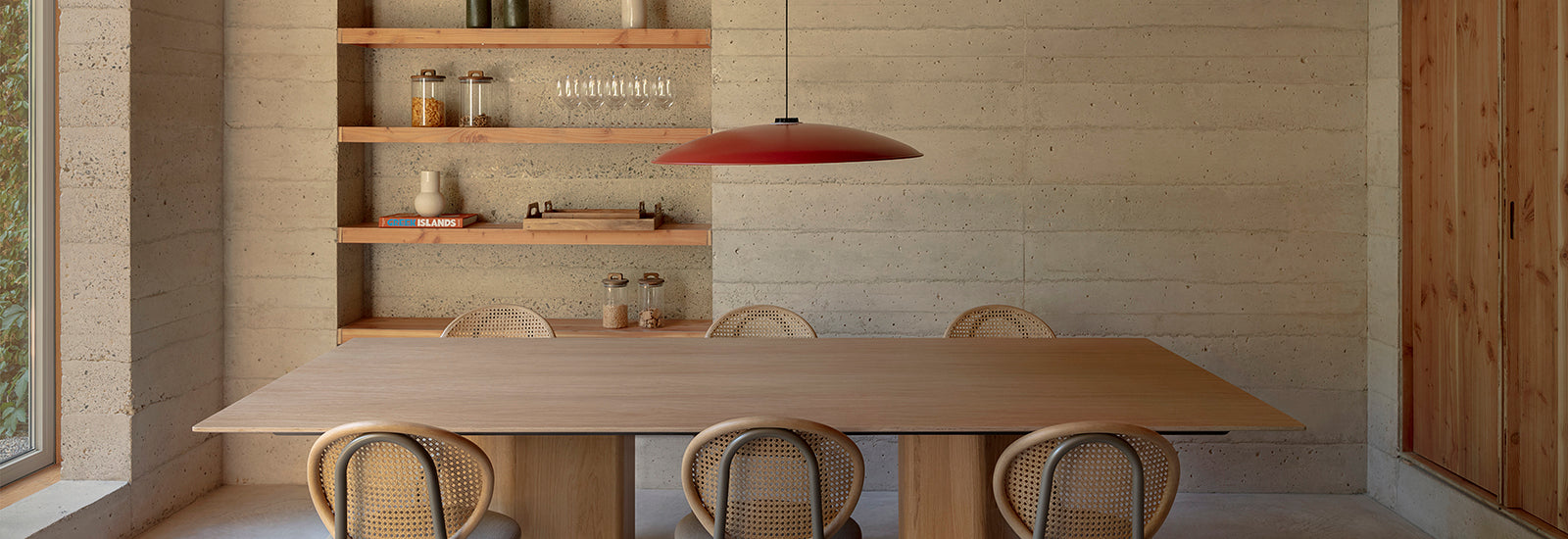 Peering at Talo dining table, one feels transported to the time where megalithic monuments such as the dolmens were erected. In a much smaller scale, Talo dining table preserves the same air of mystery and honest fascination these wonders of the ancient world awake in us. As its original outdoor counterpart, this indoor dining table is imposing in its gravity and geometrical perfection. Talo is a sculptural piece of furniture designed to fill large spaces with its hieratic presence.