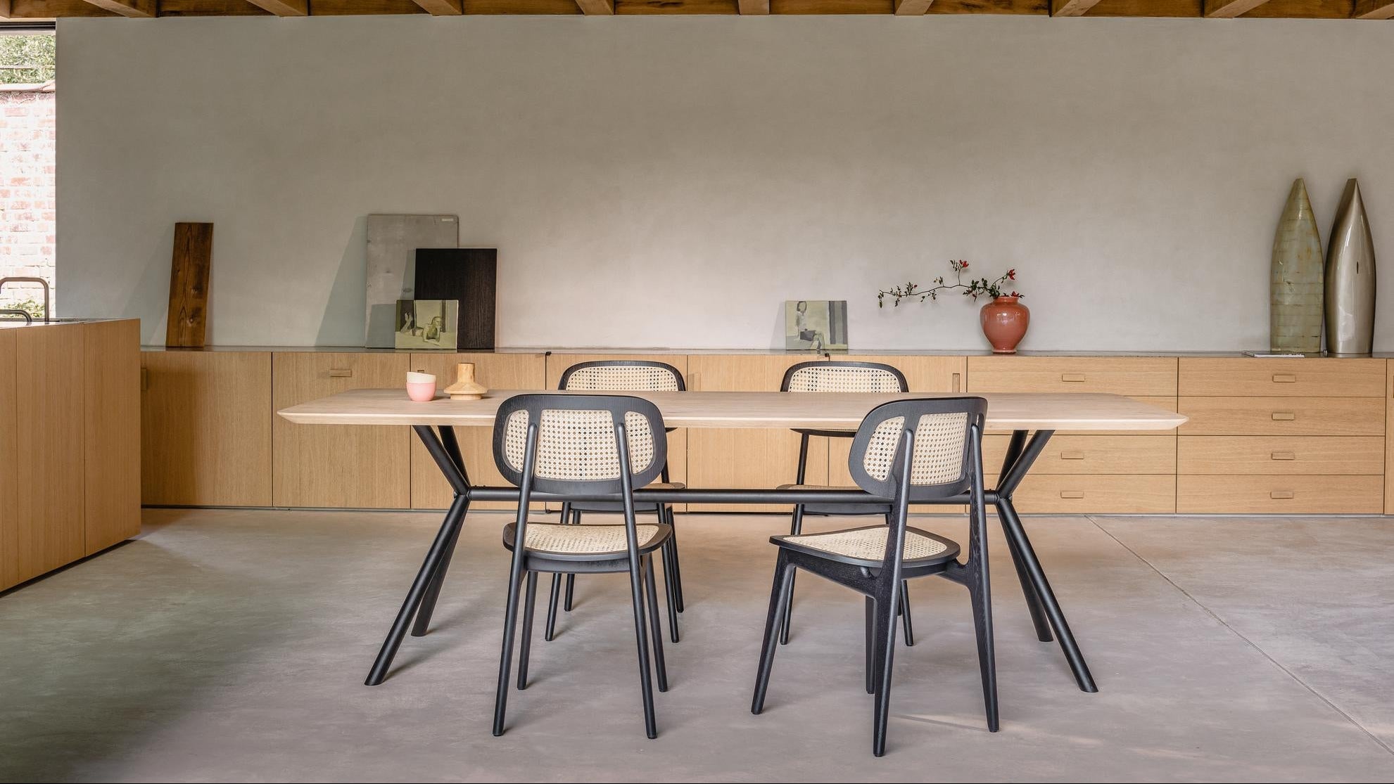 The wooden frame of the Titus chair collection pairs beautifully with the natural rattan back and adds warmth thanks to its unique wood pattern. With its simple yet refined design, skilfully crafted cane and warm wood, Titus creates a visual lightness which will enhance its surroundings at any time.