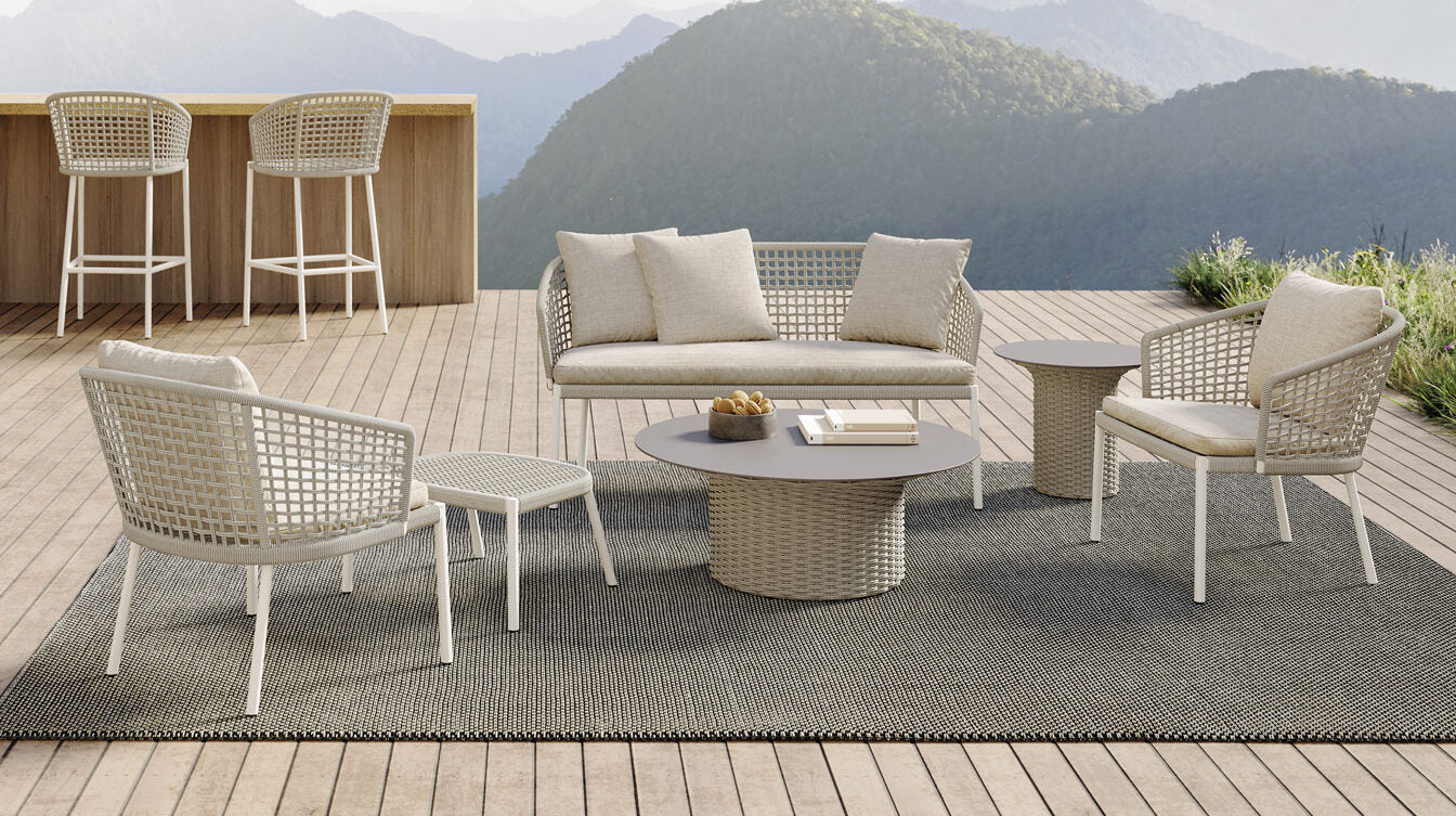 Tribeca, designed by Mario Ruiz, is a special collection with style and flexibility to seamlessly blend into any environment. Its curved powder coated aluminum backrest and all weather rope details make it the perfect choice for both hospitality and residential projects.