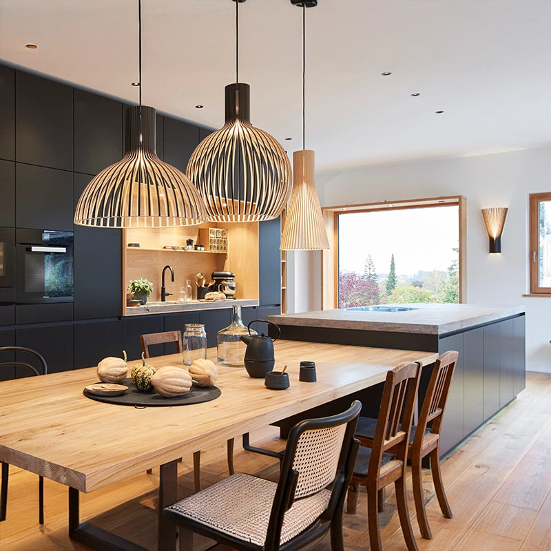 Handcrafted wooden lamps with a Scandinavian aesthetic, designed to bring warmth and character to any interior. The collection includes pendant, floor, table, wall, and ceiling lamps, offering versatile options to suit various spaces and styles.